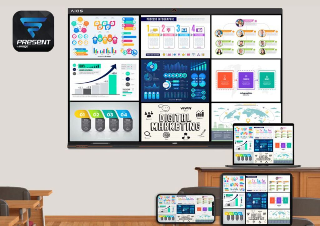 Makes sharing and collaboration effortless for both business and education settings. With its intuitive wireless sharing feature, content can be sent from any device — whether a phone, tablet, or laptop — directly to the board with just a single click. Whether it’s a business proposal, a team meeting, or a classroom lesson, the IMAGO AIOS Plus puts seamless and instant collaboration right at your fingertips, keeping everyone on the same page without the hassle of cables or complicated setups.
