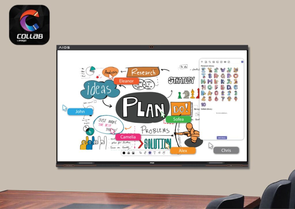 Goes far beyond what a typical whiteboard can offer. It empowers users to control the board directly from their own devices, streamlining productivity and making collaboration more dynamic and intuitive. From flowchart sharing and brainstorming sessions to wireframing in meetings, the IMAGO AIOS Plus brings a new level of creativity and efficiency to every interaction. Whether in a corporate environment or a classroom setting, this versatile smart board fosters a more engaging, attentive, and collaborative atmosphere — transforming the way teams work and students learn.