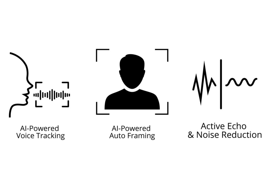 Takes video capturing to the next level with its innovative AI-enhanced tracking camera, designed to revolutionize the way meetings and presentations are recorded. Featuring AI auto framing and AI voice tracking, it delivers precise and dynamic video recordings with crystal-clear visuals that keep every participant in focus. Combined with built-in echo cancellation and noise reduction technology, it ensures crisp and clear audio quality for a truly immersive and distraction-free experience.