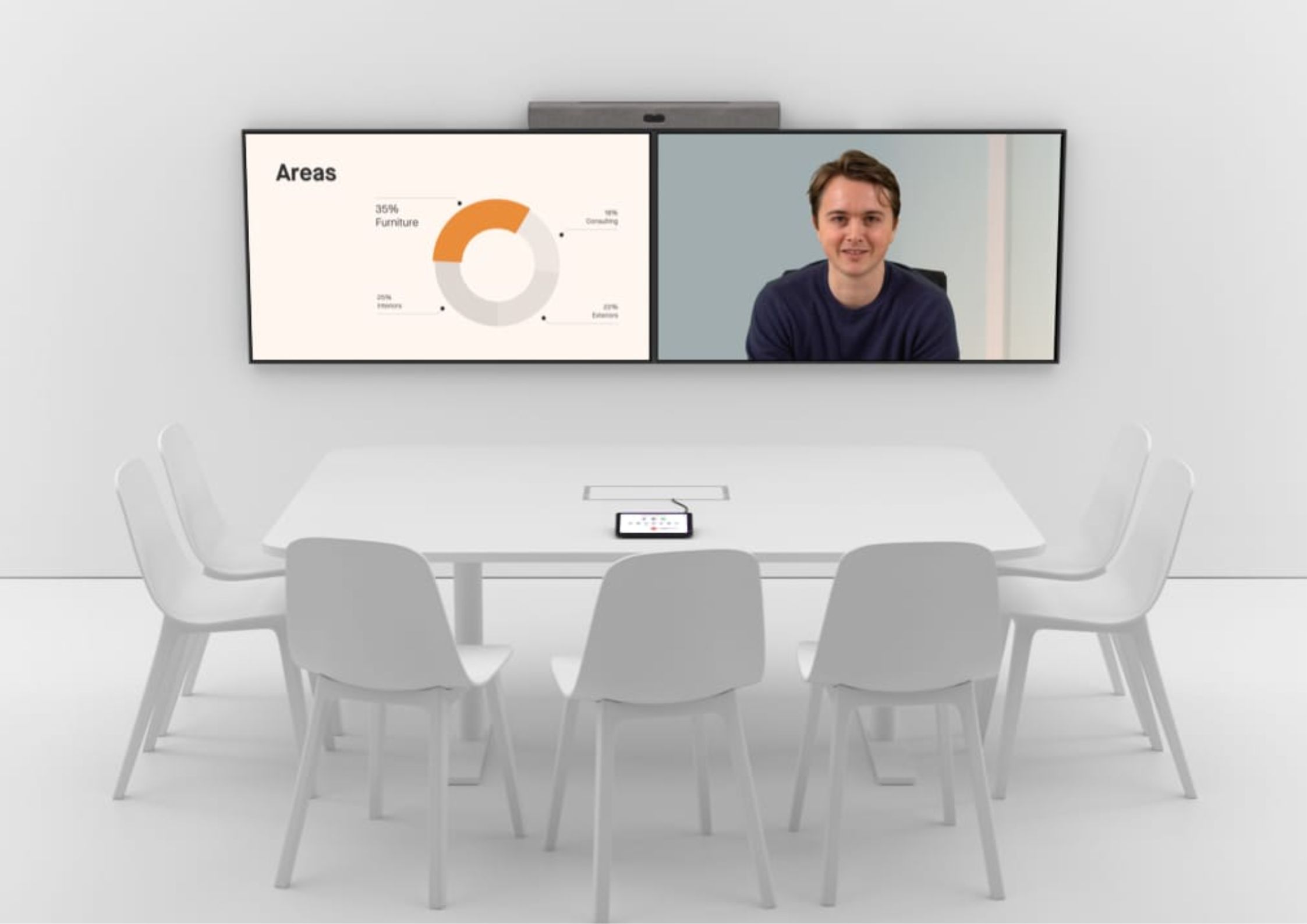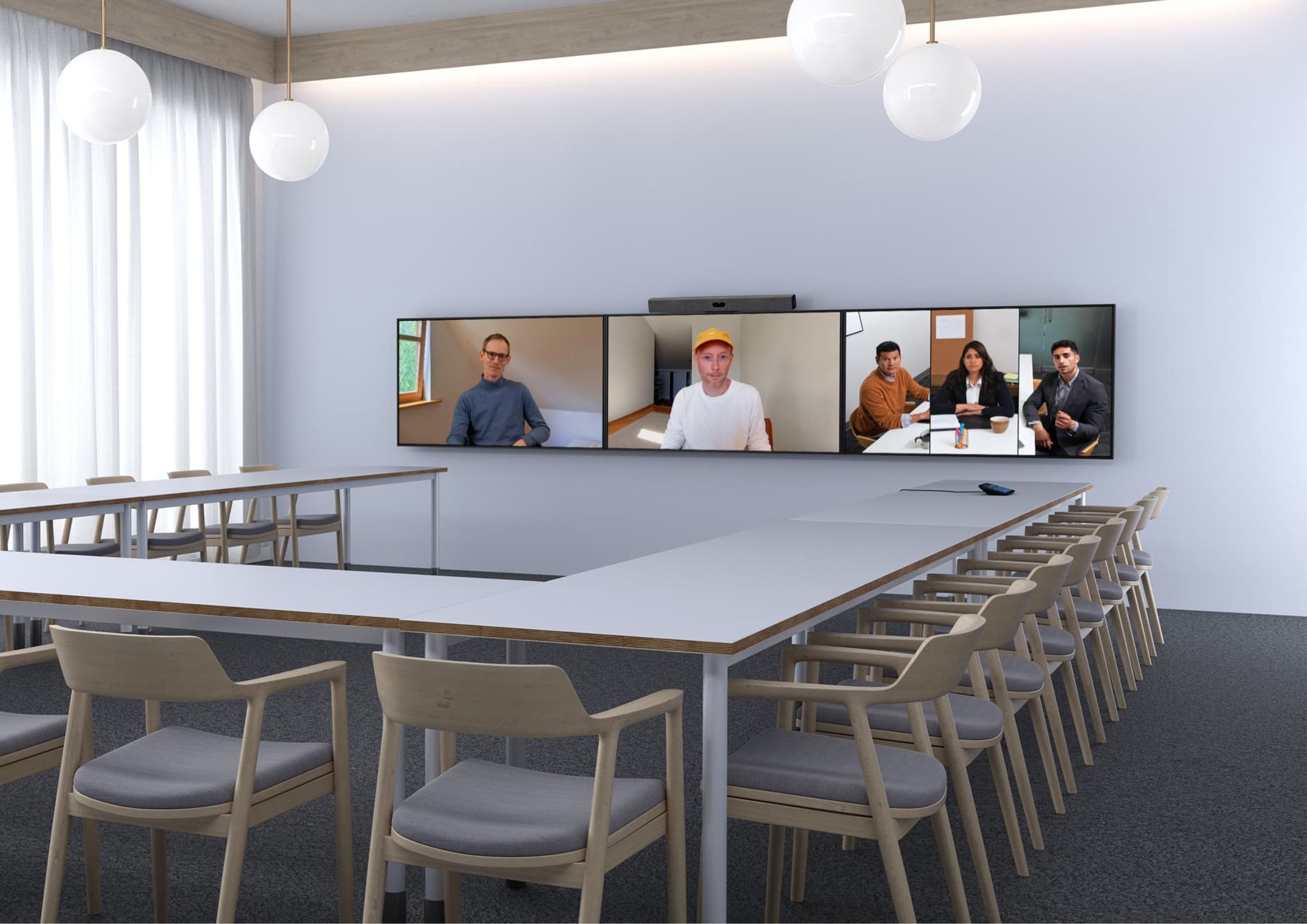 Designed for large meeting spaces, the Neat Bar Pro features a dual-camera setup with telephoto and wide-angle lenses combined with an image depth sensor. Together, they deliver up to 16x zoom, ensuring every participant is clearly visible, no matter where they are seated in the room.