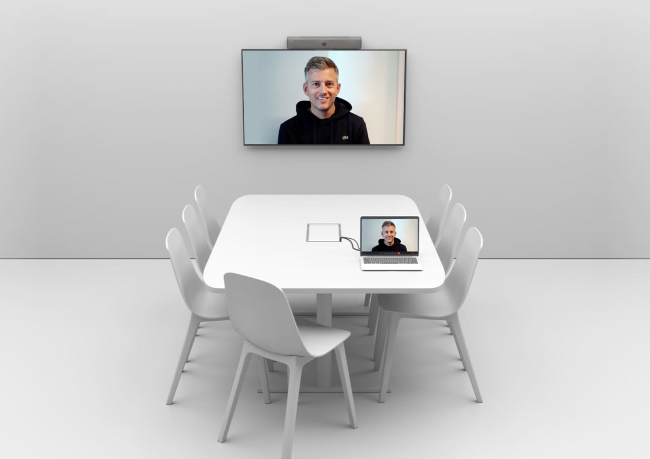 Neat Bar provides flexible options for connecting to any video meeting directly from your laptop. Enjoy a clean and clutter-free setup with a single USB-C cable connection via a hub — making it effortless to start meetings instantly without complicated wiring.