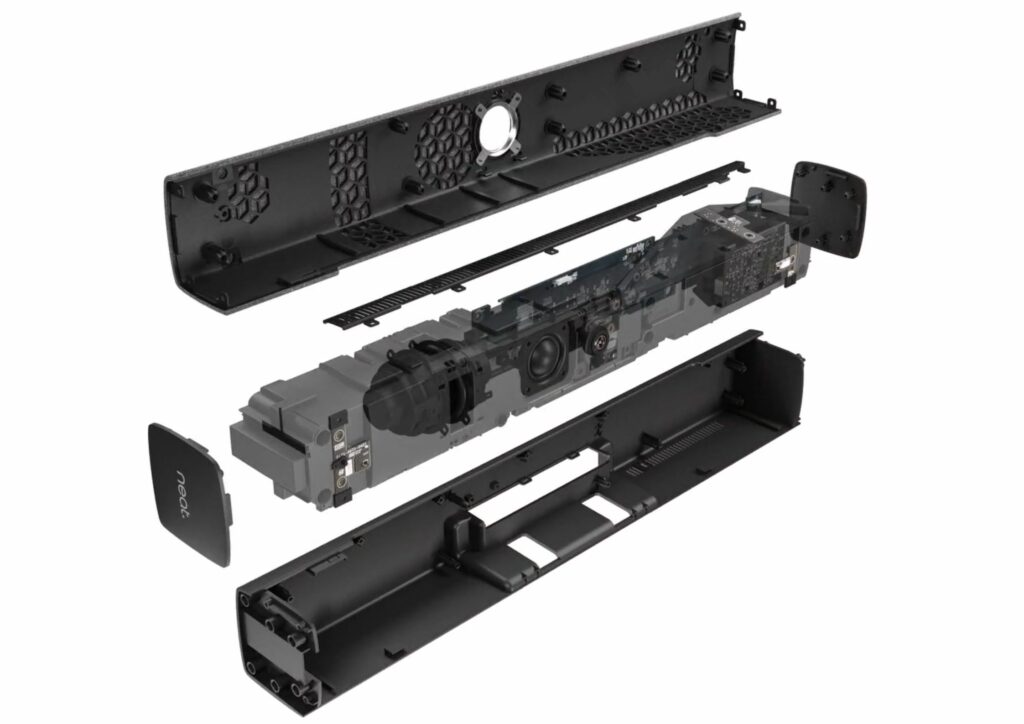 Neat Bar’s passive cooling design allows air to flow naturally through the device, eliminating the need for noisy fan-based cooling — ensuring silent operation and distraction-free meetings.