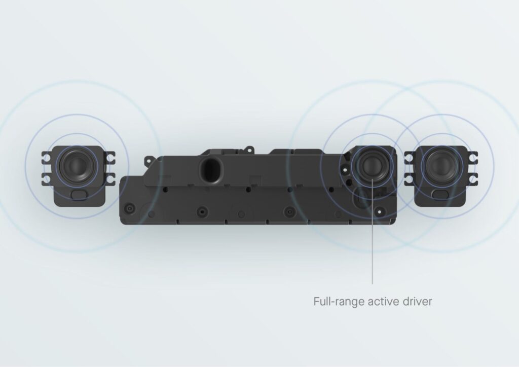 Engineered for exceptional clarity, Neat Bar Pro delivers voice-optimized stereo sound through a precision-designed speaker box that maximizes tonal range while minimizing distortion. It features three full-range speakers for directional stereo audio, along with dual woofers with opposing drivers that cancel vibration—ensuring rich, balanced, and room-filling sound for every meeting.