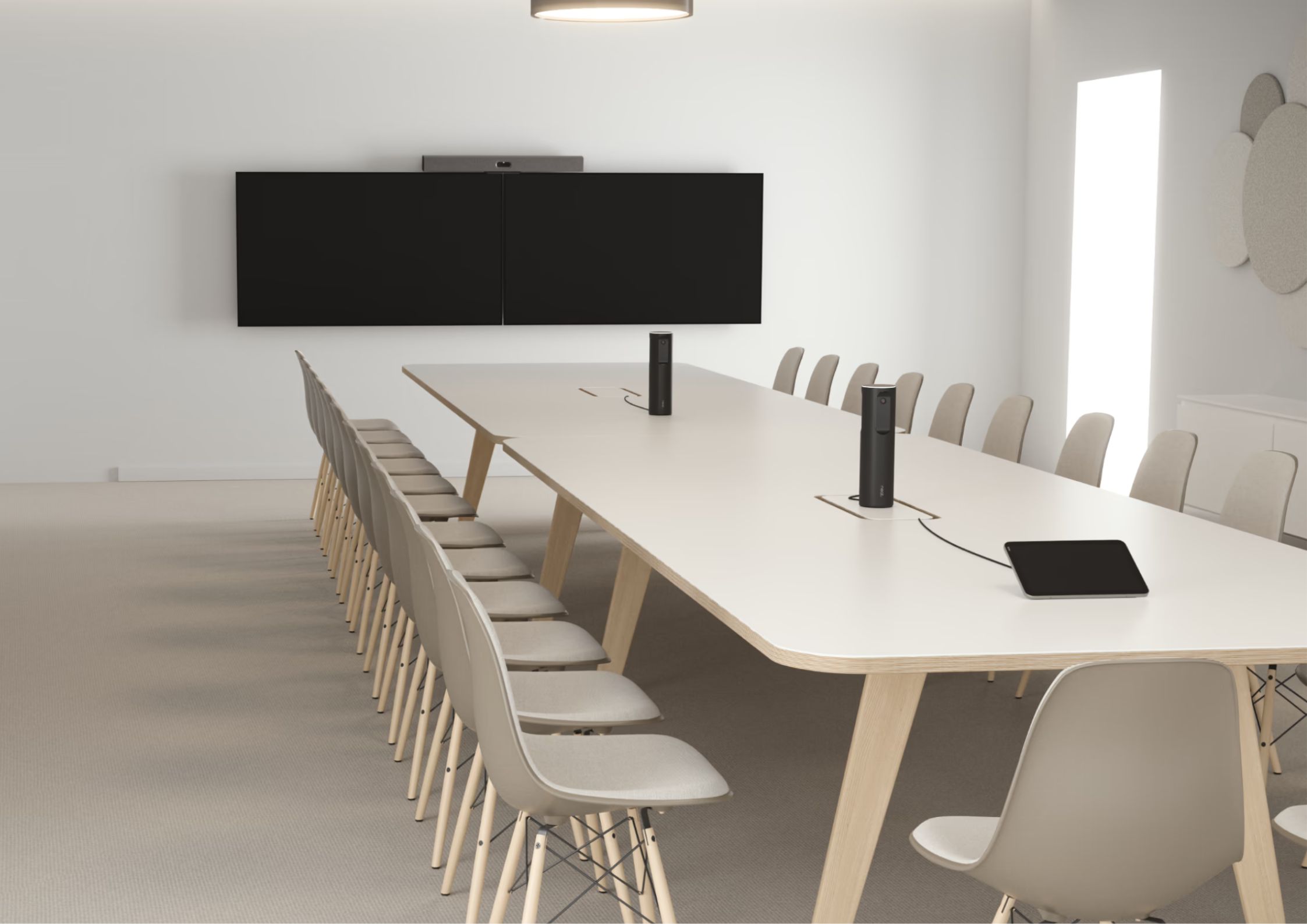 Neat Pad Pro uses dual microphones and AI-powered audio processing to expand the room’s pickup range as a meeting controller. When paired with the main front-of-room Neat device, it ensures every participant hears and is heard clearly, keeping meetings smooth and fully connected.